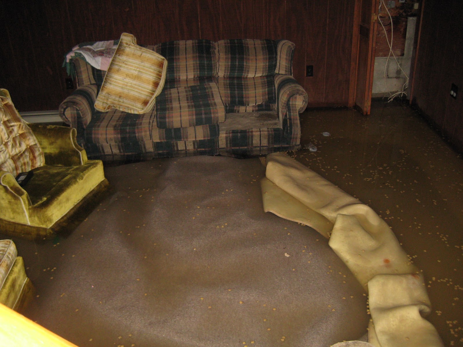 It is a strange, strange sight to see your living area under water ... We had already pulled the tv stand and tv, etc. upstairs when this pic was taken. That would have been on the right side where the rug was pulled up.